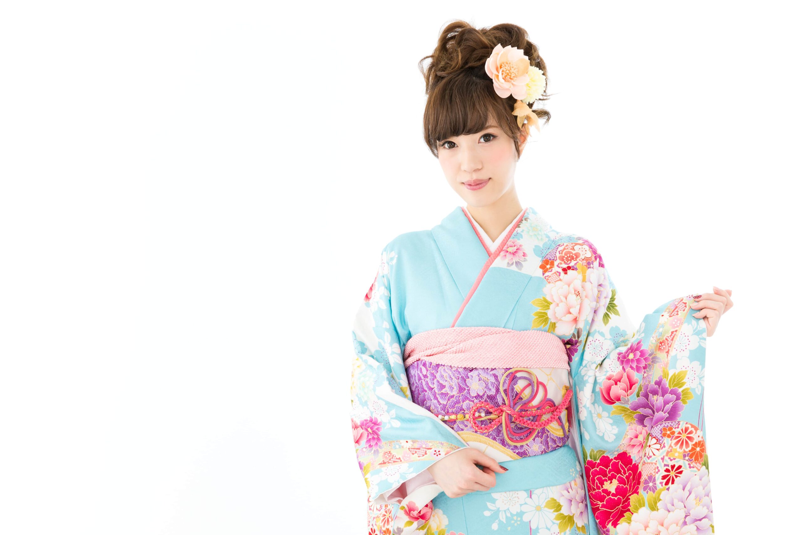 水色の振袖は、清らかさと上品さをあわせもち、空や水を思わせる色合いです。着る人の雰囲気をやわらかく引き立て、写真にも美しく残ります。「派手すぎないのに華やか」「大人っぽくも可愛くも見せられる」といった魅力があり、成人式で